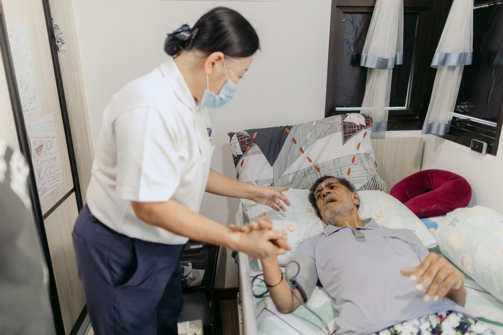 Nancy caring for the late Mr Siva. "His eyes would gleam whenever Nancy is here," said his daughter Erajesvare