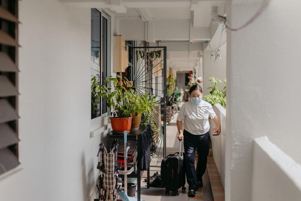 As a home palliative care nurse, pushing a suitcase full of medical equipment to patients’ homes is Nancy’s daily routine.
