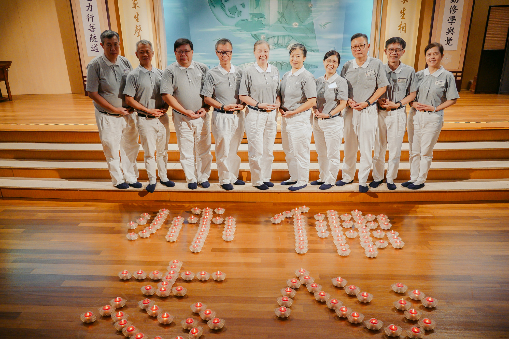 准慈委有序地用心灯排列出“佛心师志”。
